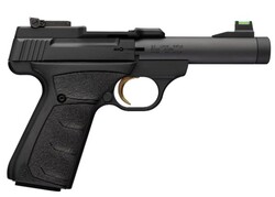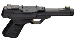 - 2026 SHOT Show Special - 4.4" matte blued bull barrel rimfire pistol features black UFX ambidextrous grips with rubber overmolding, integrated optics base with RMSc footprint, Pro-Target adjustable rear sight, and fiber-optic front sight. Suppressor-ready threaded muzzle.